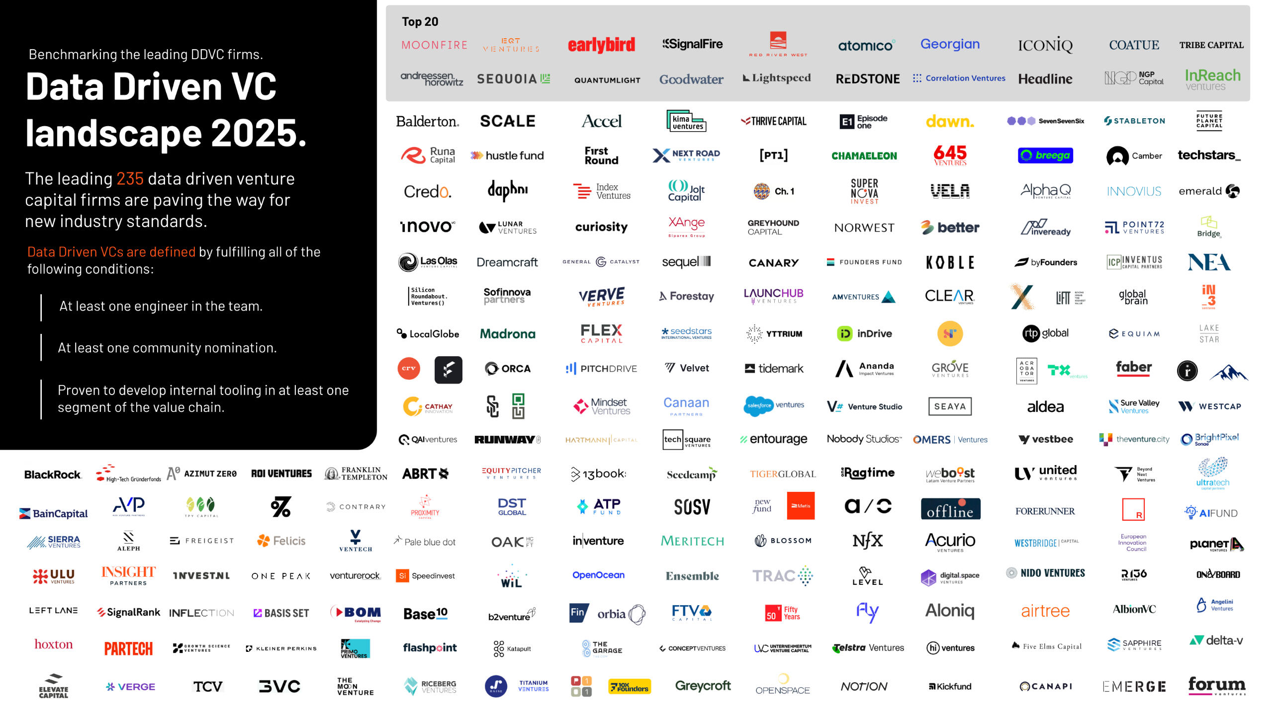 AI? Agents? Automations? We got you covered!Learn how the best investors in the world are leveraging data & AI to become more efficient, effective, and inclusive to identify the most promising deals at the right time and propel their portfolio companies forward.This report has mapped 235 Data Driven VC firms and 100 thought leaders across the globe to provide the most important insights and tangible steps to become more data-driven.